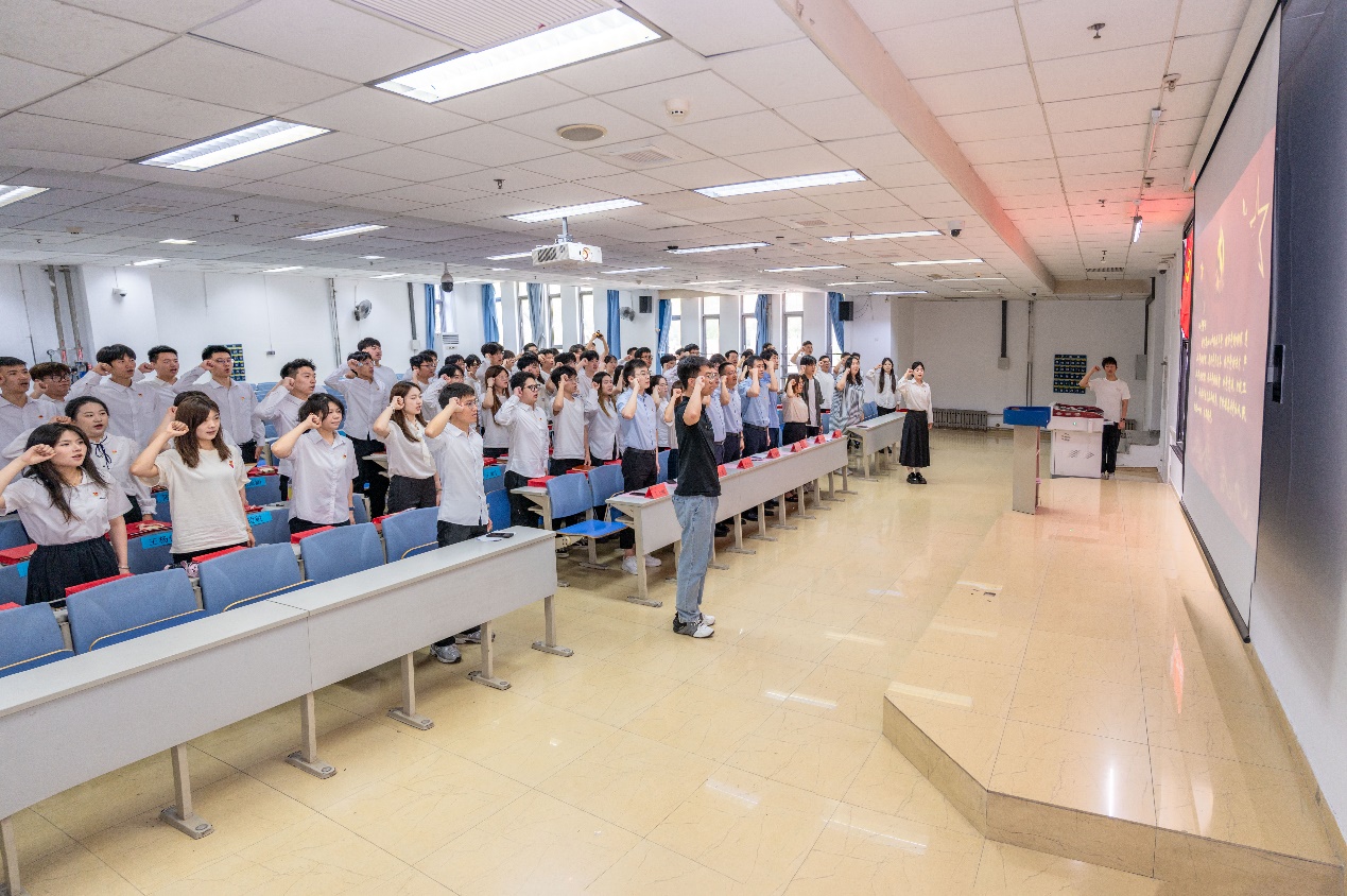 大会最后,在毕业生辅导员王士崛领誓下,会场内全体党员面向党旗庄严宣誓,在铮铮誓言中重温入党初心,坚定理想信念,牢记职责使命,表达了党员们为共产主义奋斗终身的决心。