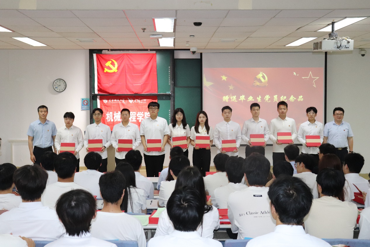 随后,学院党委副书记王光大和纪委书记刘阳为毕业生党员代表颁发了学院精心准备的纪念品,学院悉心定制了政治生日贺卡和党员笔记本,希望毕业生党员可以铭记政治生日,牢记入党誓词,以实际行动为母校添彩,为党旗增辉。