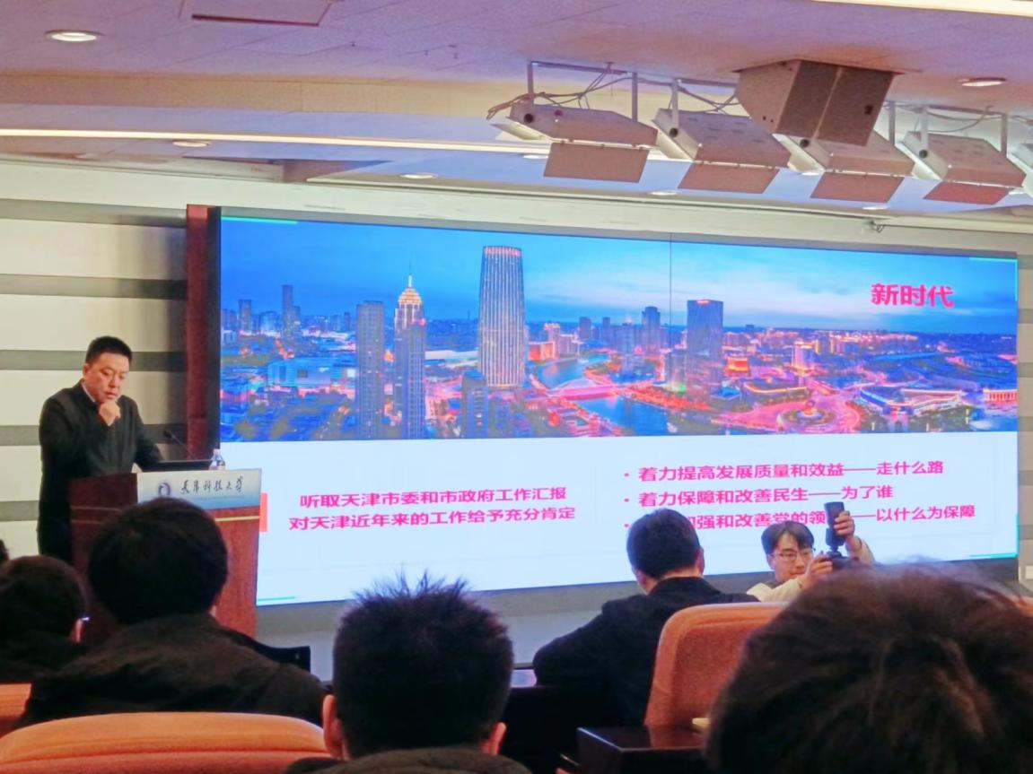 刘学老师围绕如何学习贯彻习近平总书记视察天津重要讲话精神,以“学习贯彻习近平总书记视察天津重要讲话精神——落实习近平总书记‘四个善作善成’重要要求,奋力谱写中国式现代化天津篇章”为题,结合中共天津市委十二届五次全会精神,从牢记嘱托、学在深处,充分认识学习宣传贯彻习近平总书记重要讲话精神的重大意义;勇担使命、谋在新处,深刻领会把握习近平总书记重要讲话精神的精髓要义和实践要求;开拓进取,干在实处,把习近平总书记殷殷嘱托全面落实到津沽大地上三个方面,聚焦新时代新征程习近平总书记对天津工作的总体要求,“四个善作善成”的重要要求和巩固拓展主题教育成果、加强党的建设的部署要求进行了宣讲。