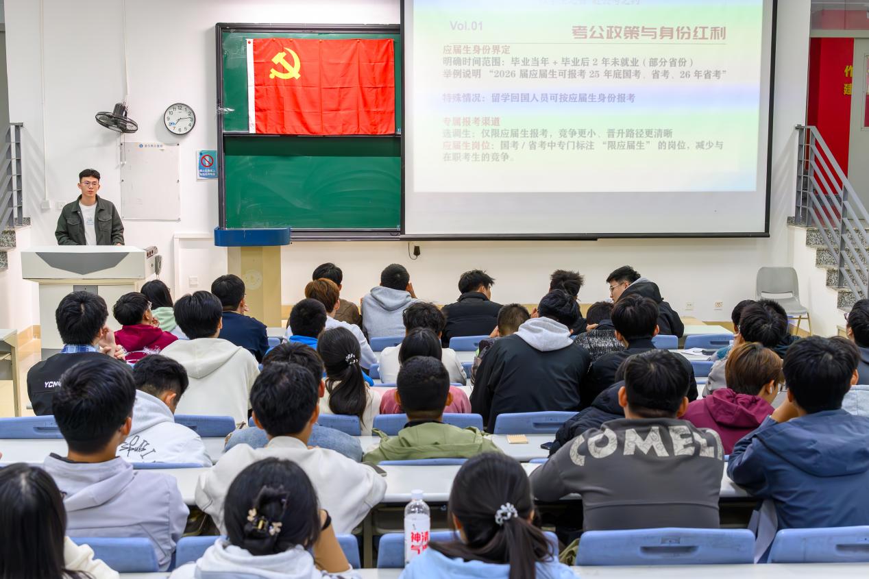 聚焦考研,何晋达同志分享备考策略。针对日益激烈的考研竞争,何晋达同学为在场学生带来了深入的形势分析。他结合个人经验,就如何科学选择院校专业、制定高效备考规划等关键问题进行了详细阐述,为备考学子提供了清晰的思路与方法。