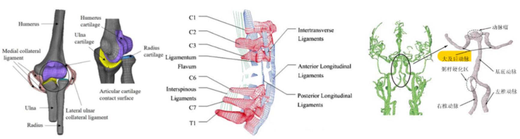 (1)通过对肘关节的生物力学特性进行研究,揭示肘关节损伤的力学机制,可为肘关节外科手术的改进和评价提供理论依据。基于数理力学基础的肌骨系统组织多尺度生物力学与力学生物学研究,进行其重建、损伤与康复机理的研究与应用。