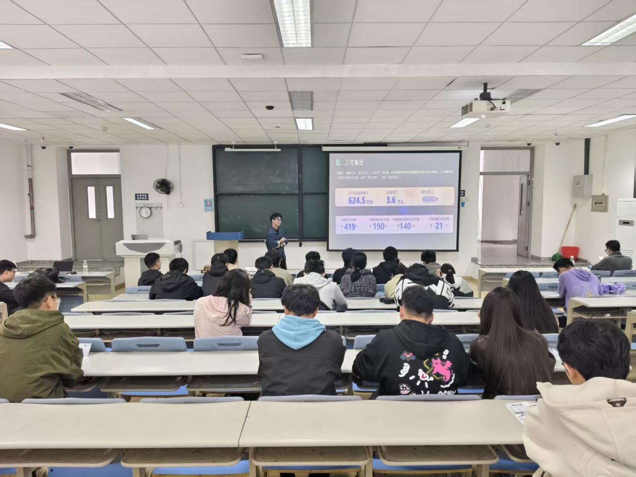 2025年10月15日14时,浙江三花汽车零部件有限公司来到机械工程学院开展招聘宣讲会,为毕业生们提供企业信息和相关岗位的介绍与招聘流程,机械工程学院宁超老师参与会议。