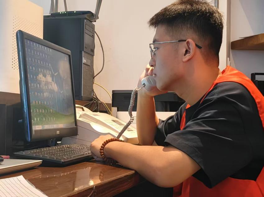 馆内,在前台工作的志愿者守住办公桌的一角,全神贯注地盯住电脑的信息,生怕错过消息。手边是博物馆的电话,当铃声响起,志愿者便迅速接起,以积极热情的口吻与来电者沟通,为来电者解决问题。